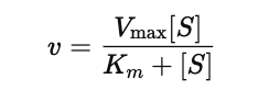 La ecuación de Michaelis-Menten describe cómo la velocidad de reacción (v) depende de la concentración de sustrato