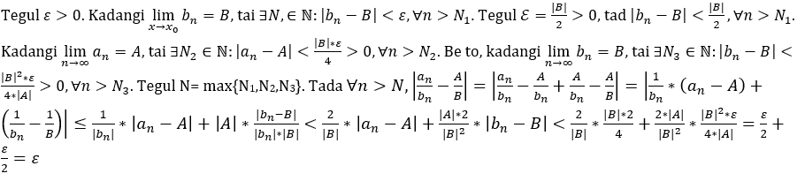 lim(n → ∞) an = L, jei ∀ ε > 0, ∃ N, ∀ n > N, |an - L| < ε.