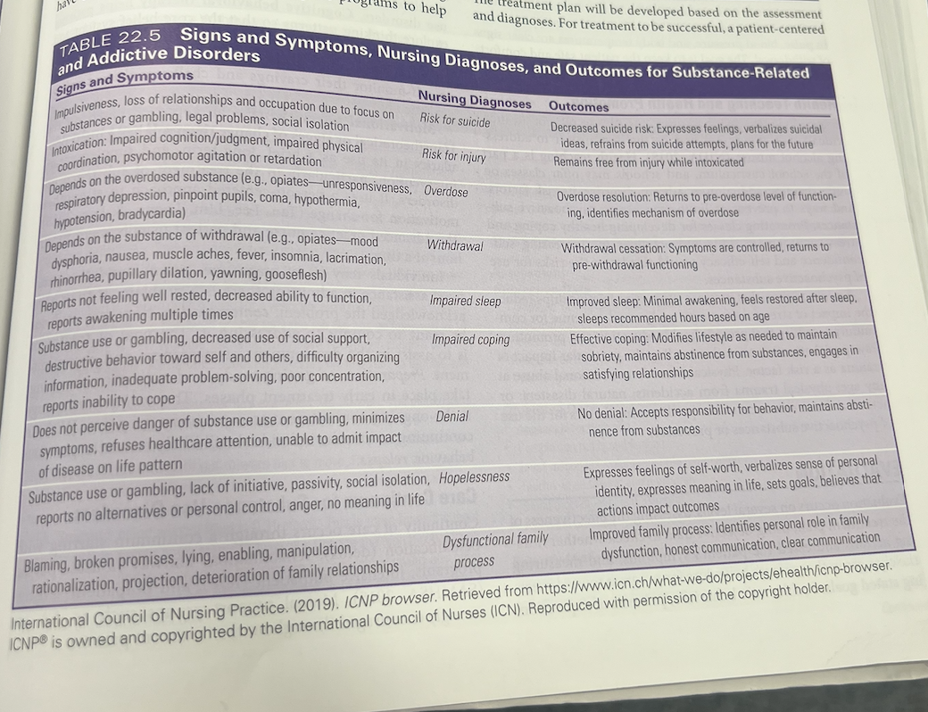 2. Develop individualized evidenced based nursing care plan for patients with substance-based use disorders incorporating physical, psychological, and social needs.