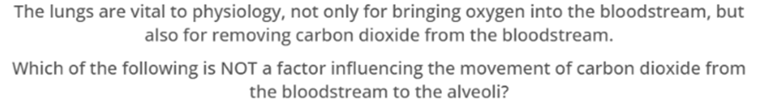 a) The partial pressure of carbon dioxide in the lungs is low, encouraging diffusion of carbon dioxide into alveoli.