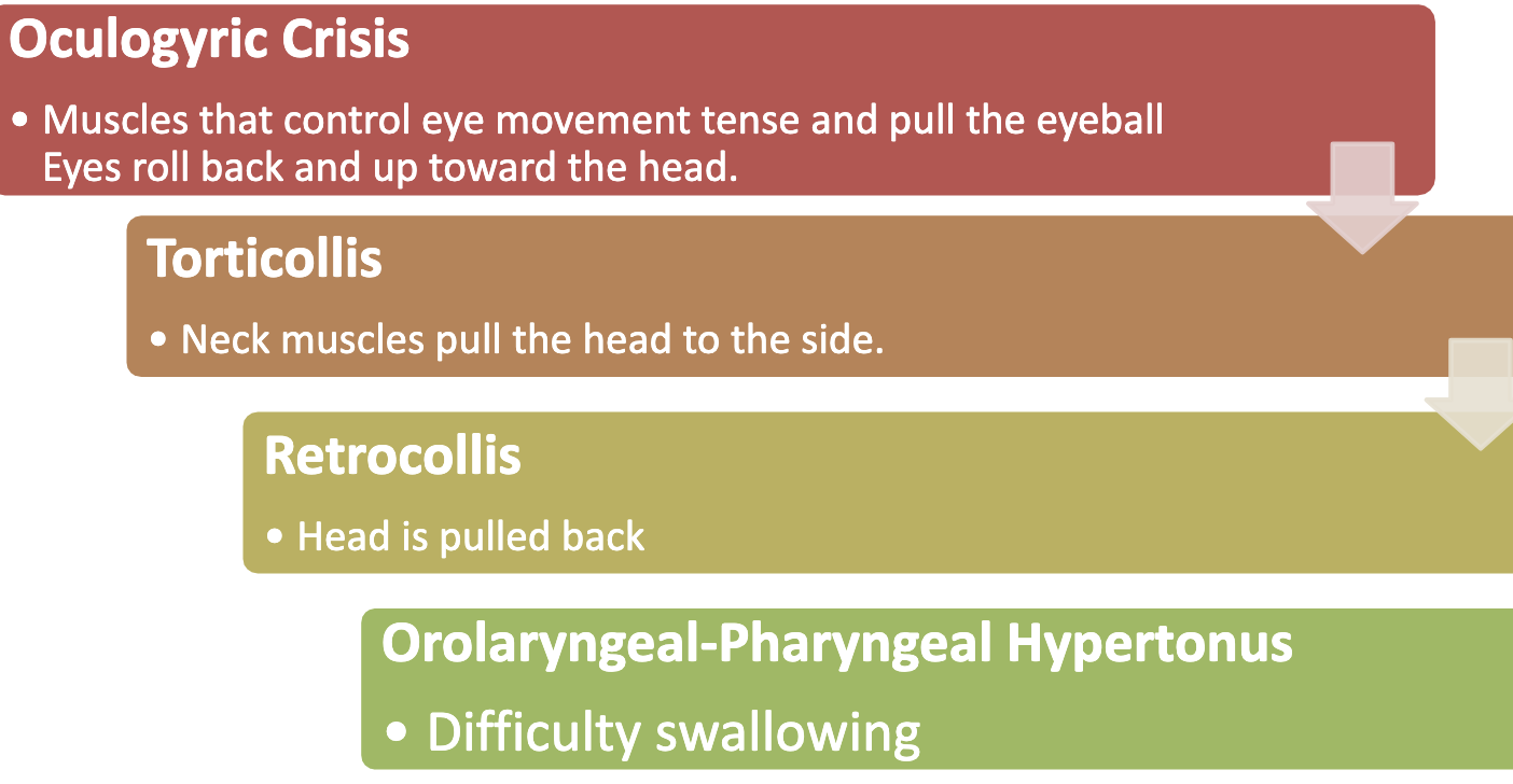 dystonia, akathisia, parkinsonian, and tardive dyskinesia