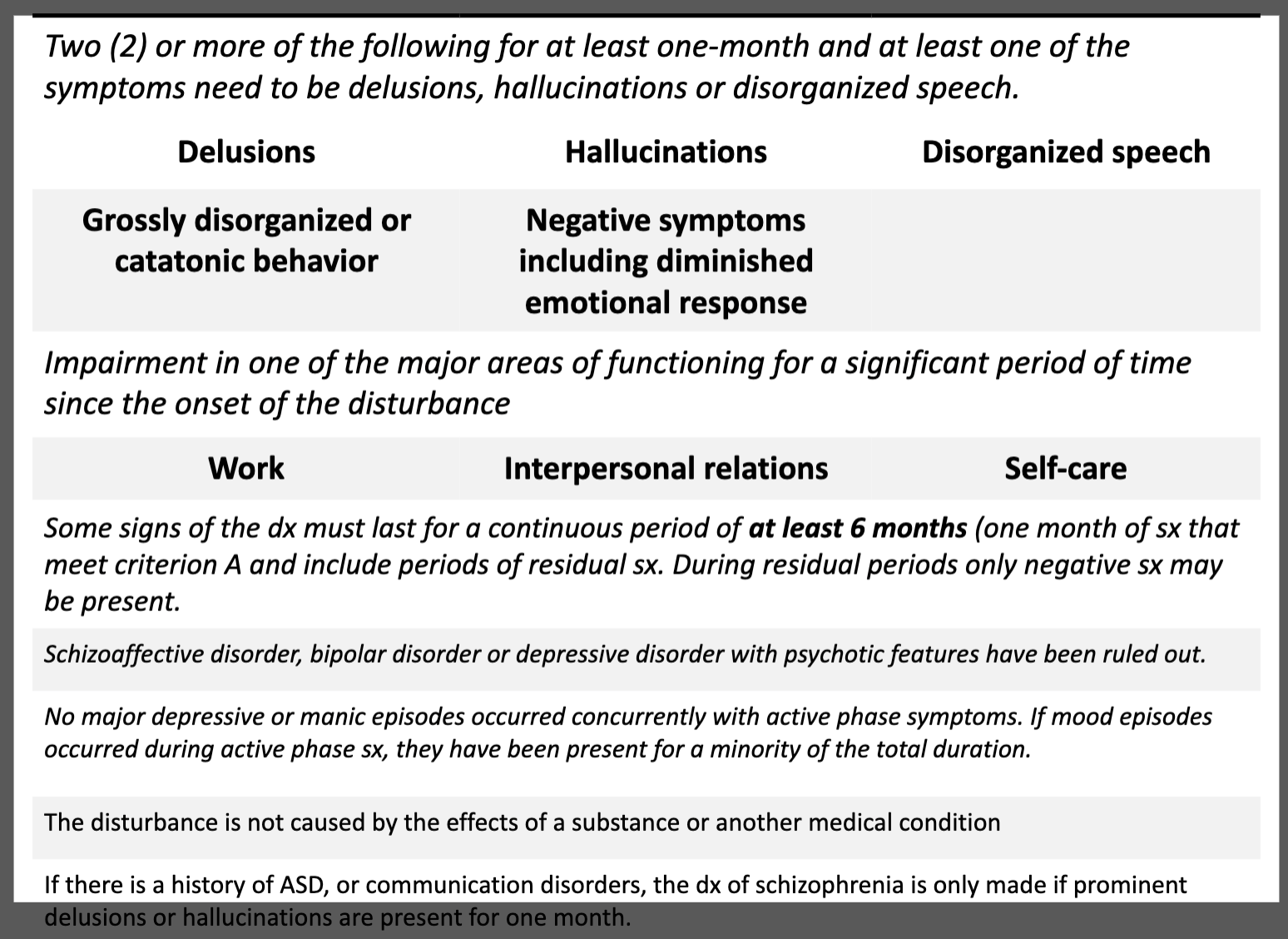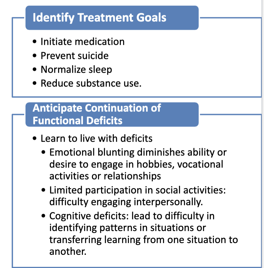 adherence is a challenge → medications are taken for a lifetime unless patient develops: neuroleptic malignant syndrome, agranulocytosis or tardive dyskinesia