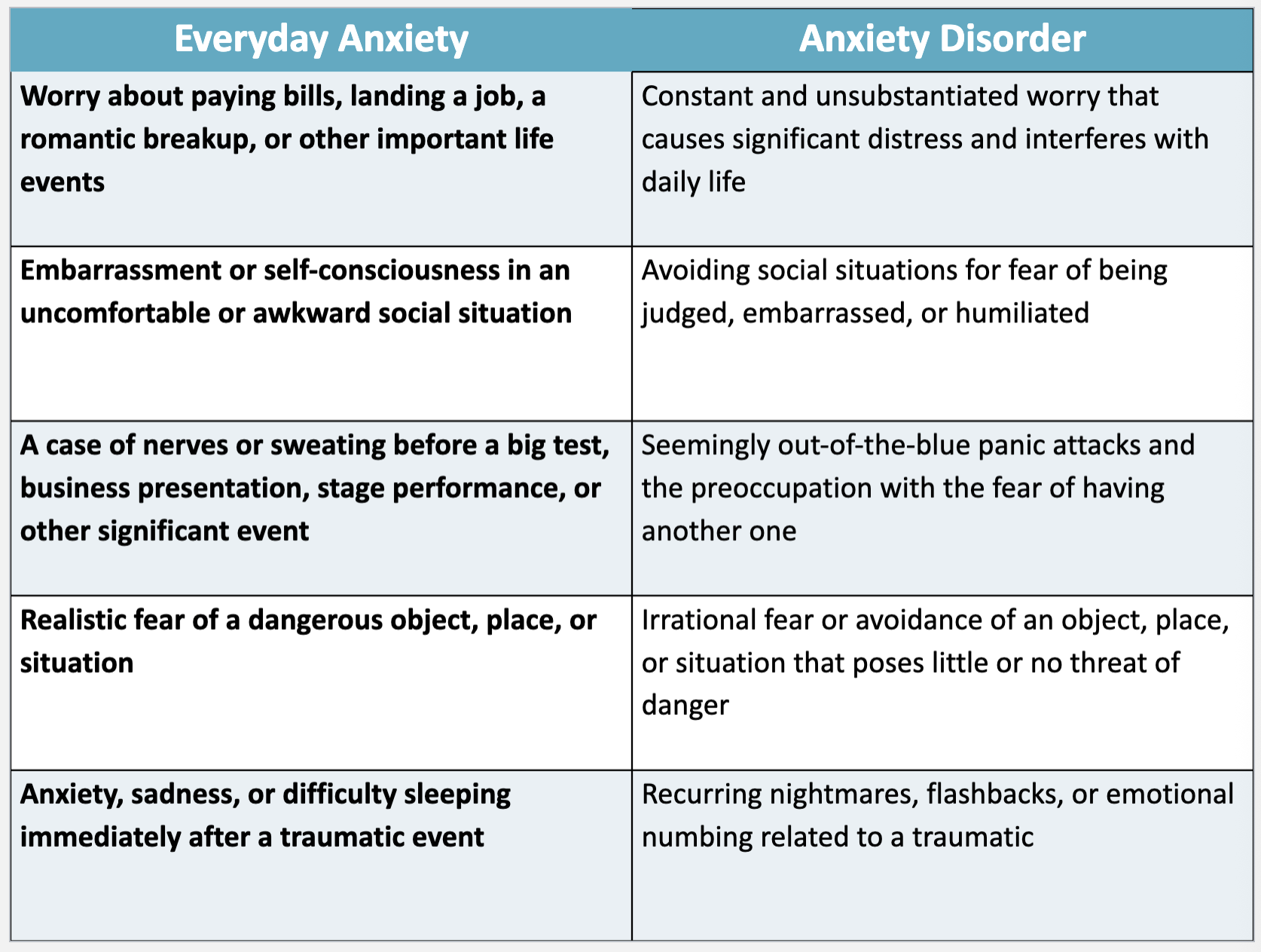 assess and acknowledge presence of anxiety (behavioral and somatic symptoms)