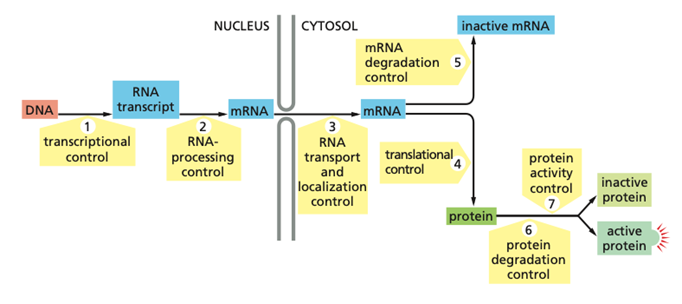 What are the different checkpoints in which cells can alter their gene expression (7 checkpoints)?