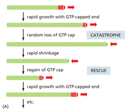 It occurs when the GTP cap at the plus end is lost. While tubulin subunits are added with GTP bound, GTP is hydrolyzed after incorporation into the microtubule. As long as new GTP-tubulin is added faster than hydrolysis, a stabilizing GTP cap is maintained and the microtubule grows.