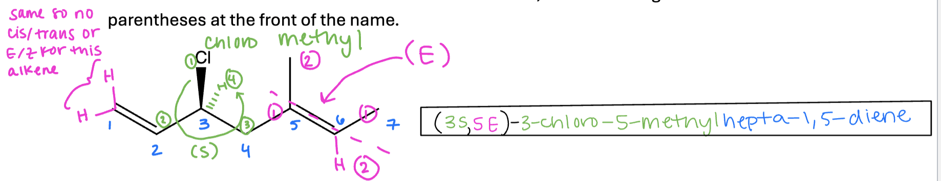 If the alkene can be classified as either cis/trans or E/Z, then this designation is included in parentheses at the front of the name