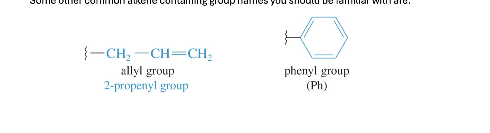 Some other common alkene containing group names you should be familiar with are: