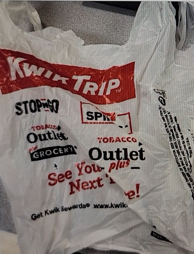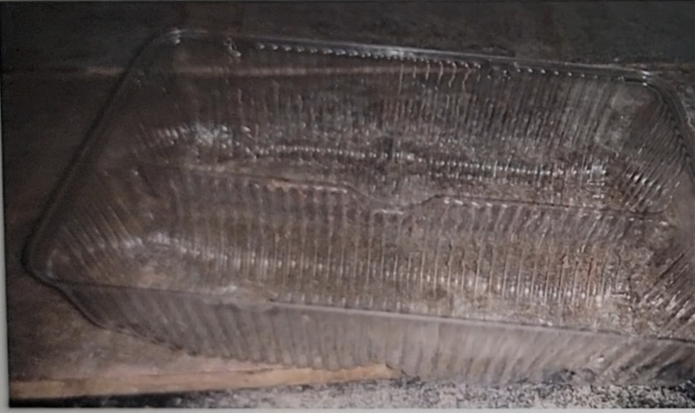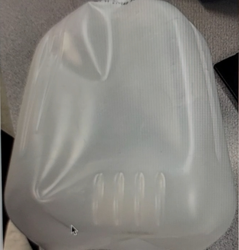 Bottom Part of B: plastic tube is pinched close forming the seam.