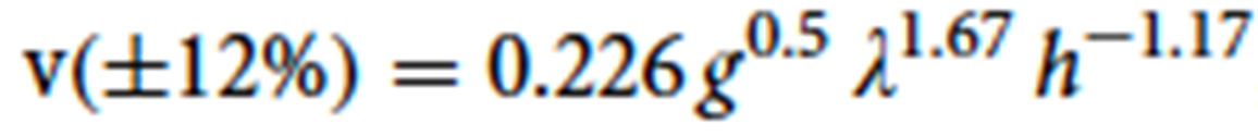 Use Alexander's formula: v = 0.25 * g^0.5 * SL^1.67 * h^-1.17 where g = gravitational acceleration (9.8 m/s^2).