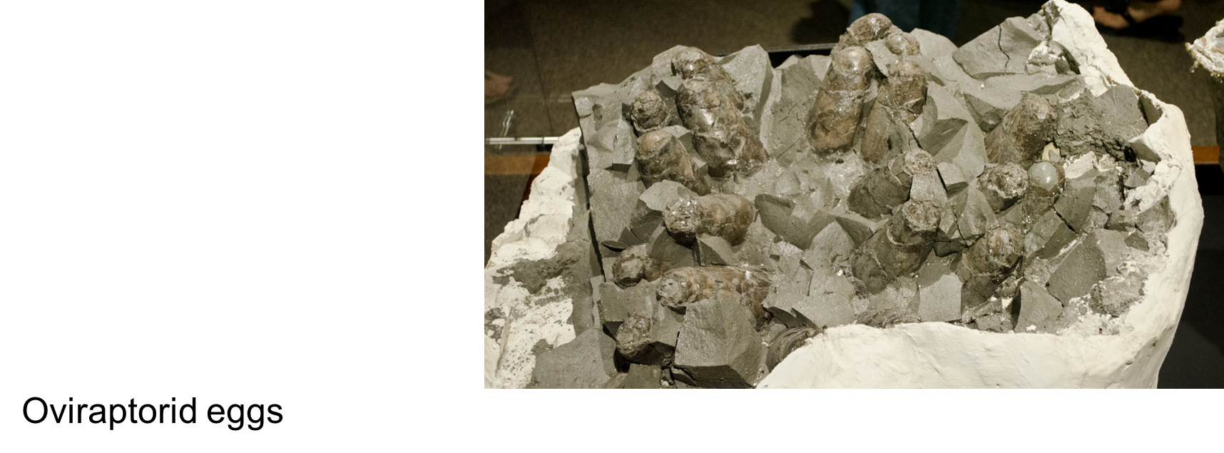 Mineralized eggs found in many dinosaur clutches (Lecture 22 and 23).