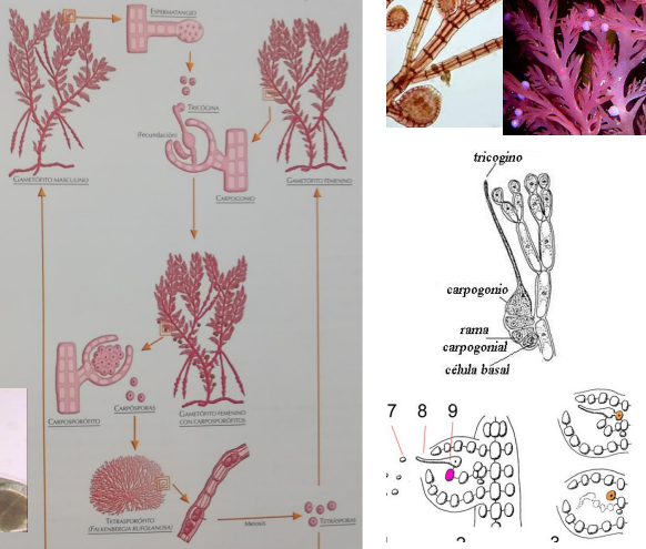 Sobre el talo femenino se genera un carpoesporofito diplode (recubierto de cistocarpo → protector).
