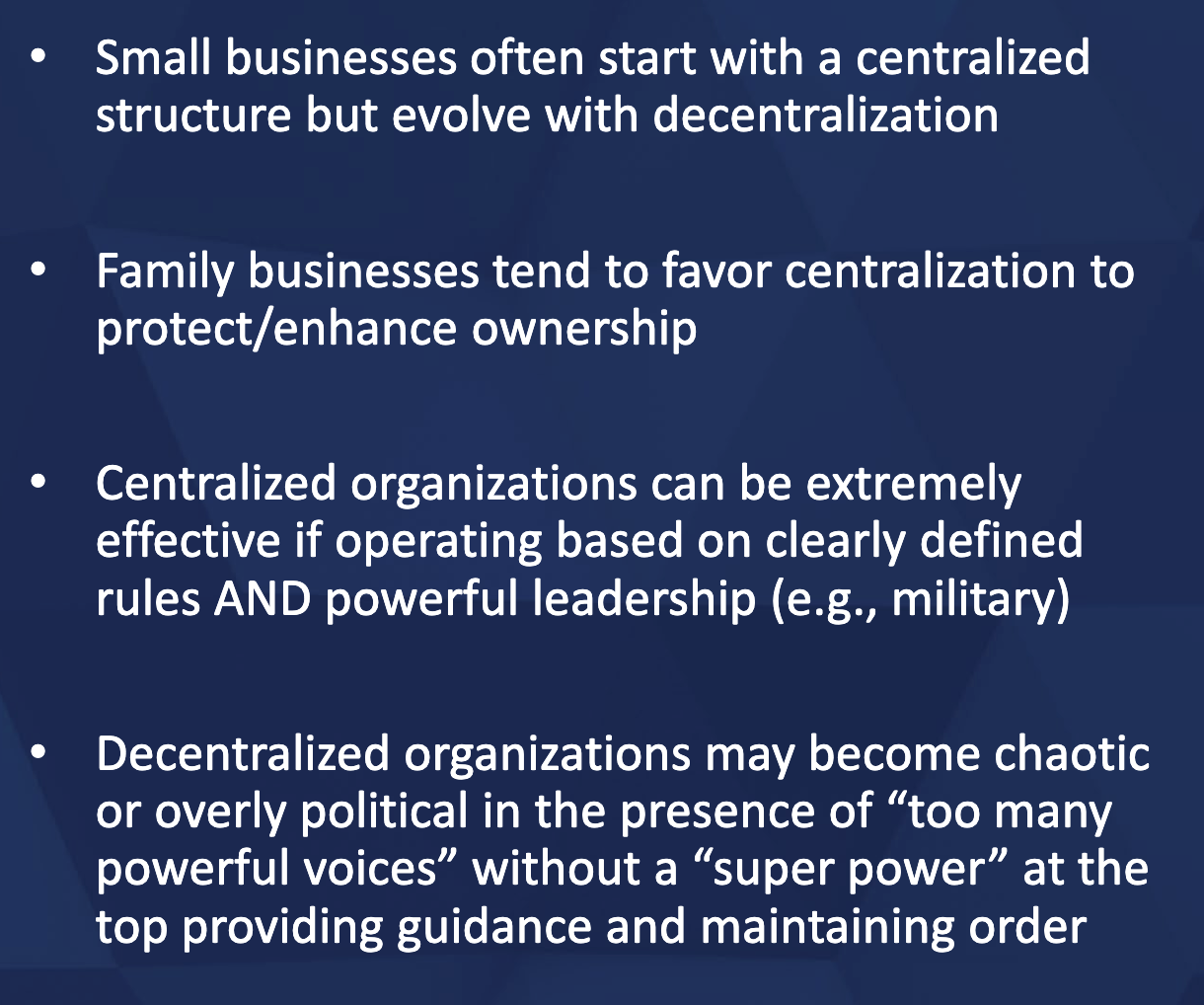 • Decentralized decision-making due to