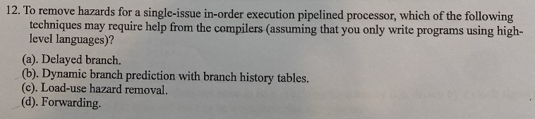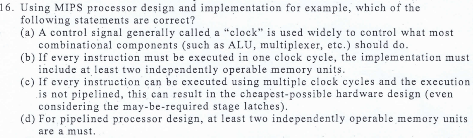 D : Only 1 cycle pipeline need it.
