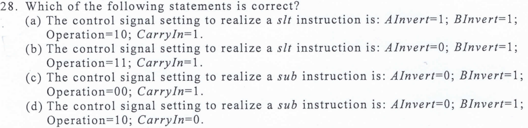 B 執行減法是二補數 所以最後要再加1 因此CarryIn=1