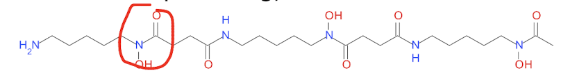 Siderophores produced by m/o & fungi which are compounds that bind to Fe, aiding in its solubility & Fe acquisition