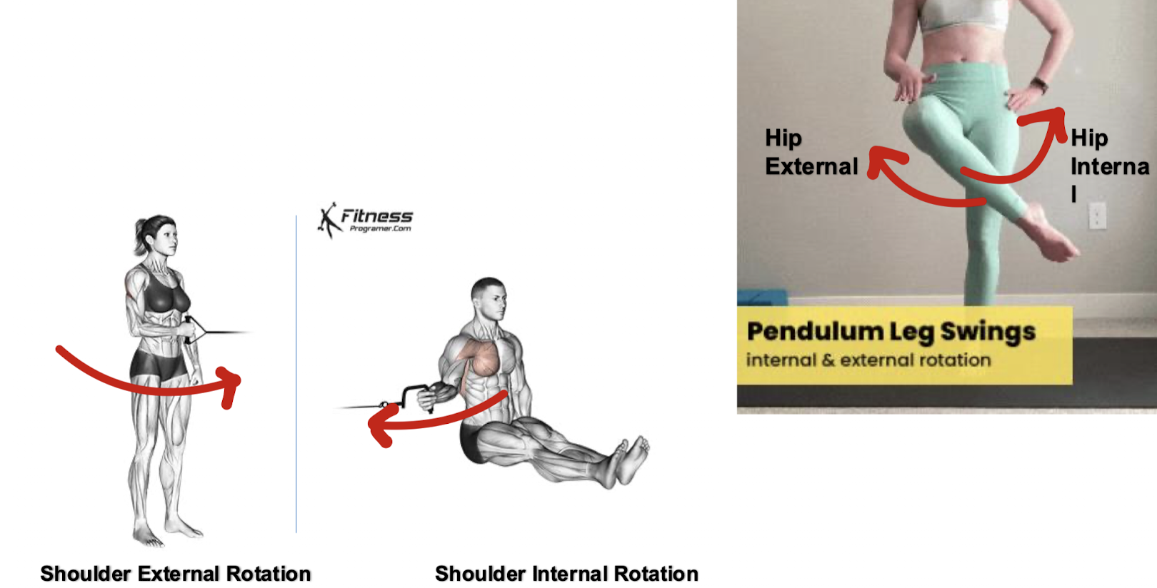 why does internal and external rotation look like for the hip and the shoulder?