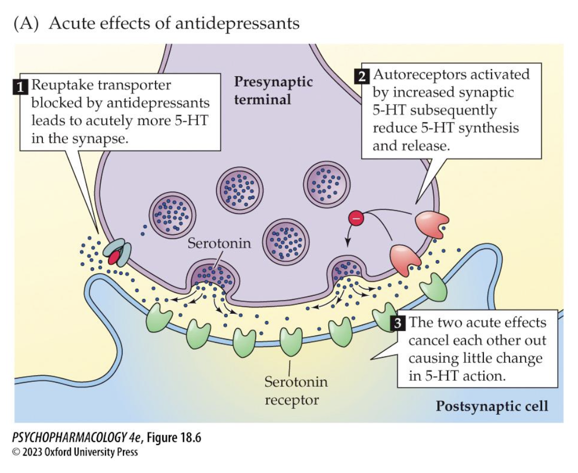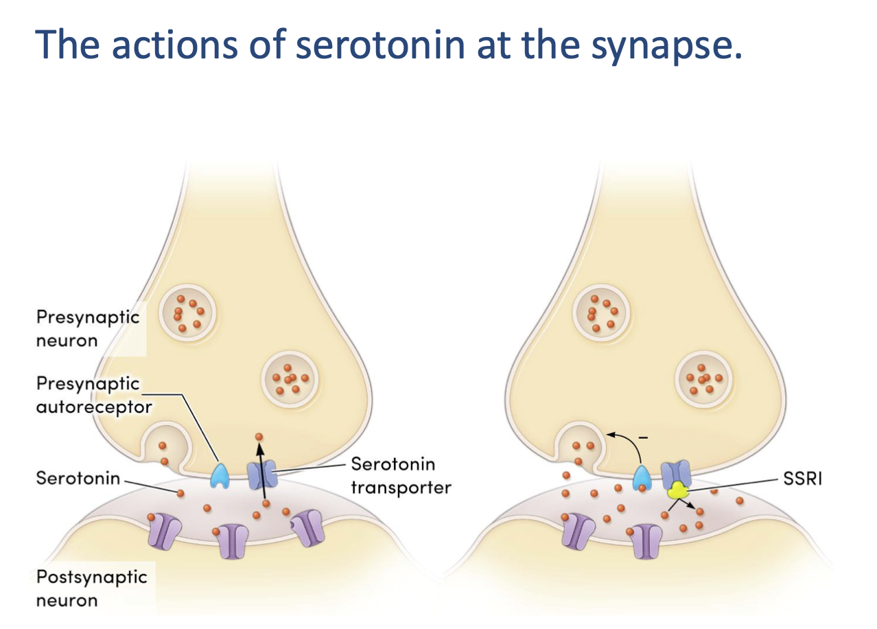 more 5HT = greater postsynaptic effects