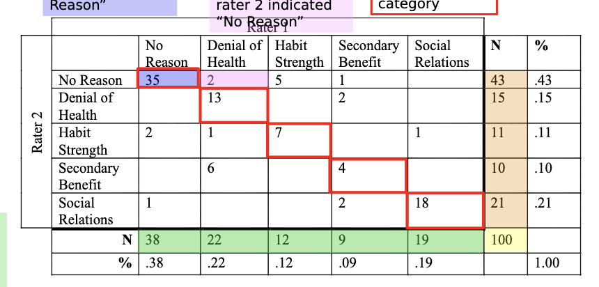 Example: Two teachers rate whether students are “on-task” or “off-task.” They agree 80% of the time, but 50% agreement could happen by chance—so Cohen’s Kappa measures the agreement beyond that chance portion.