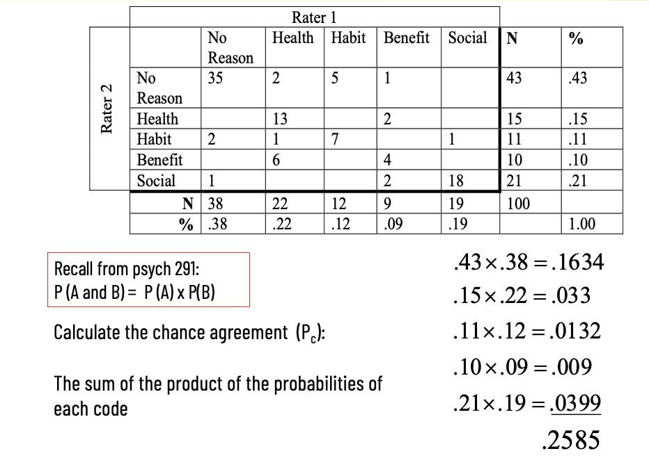 The probabilities come from when calculating Pc from the marginal totals (row % and column % for each category).