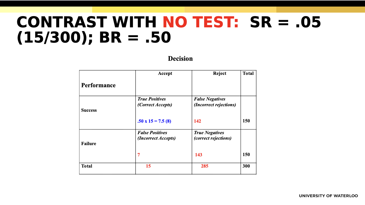Because of this, tests used to make decisions about people (e.g., hiring, admissions) should have reliability ≥ .90 to ensure accuracy and fairness.
