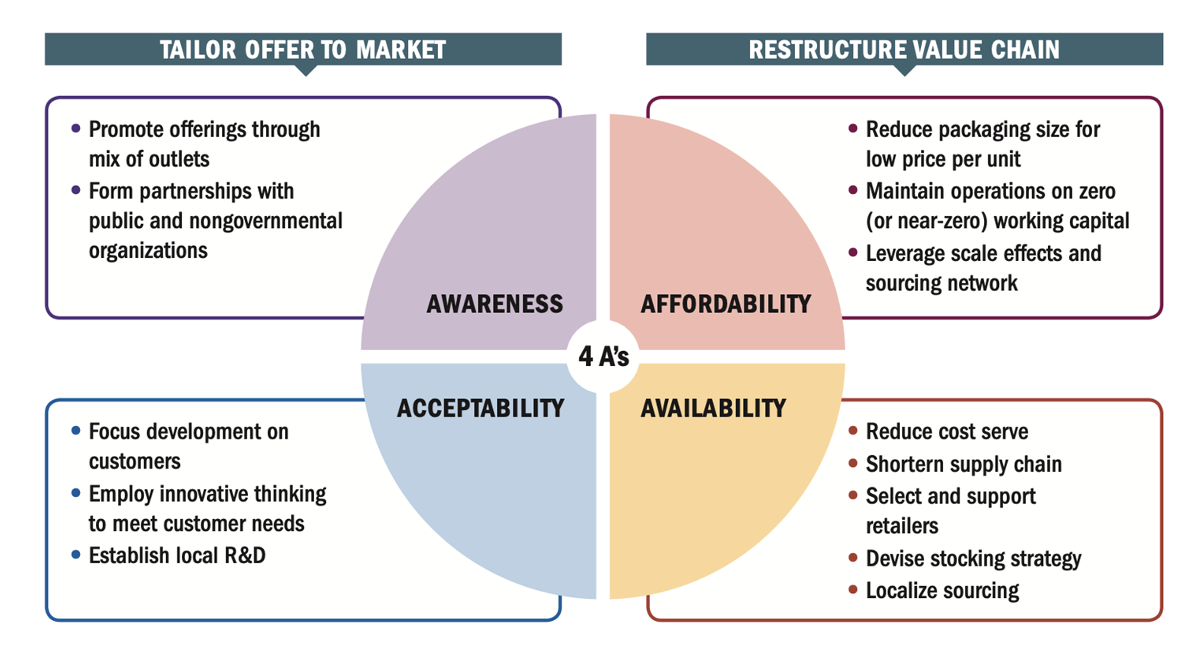 EX: India UNILEVER sold single-use shampoo sachets for only 1 rupee, making it an affordable product for low-income consumers