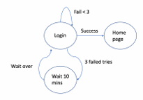 Per the diagram below, only one test is needed: Login, Fail, Fail, Fail =3, Wait, Login, Home. If you were required to exit after the Wait, a second test would be required but the question doesn’t indicate that an exit is required.