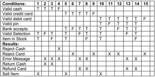 Use decision table testing to derive test cases. You have been given the following conditions and results from those condition combinations. Given this information, using the decision table technique, what is the minimum number of test cases you would need to test these conditions?