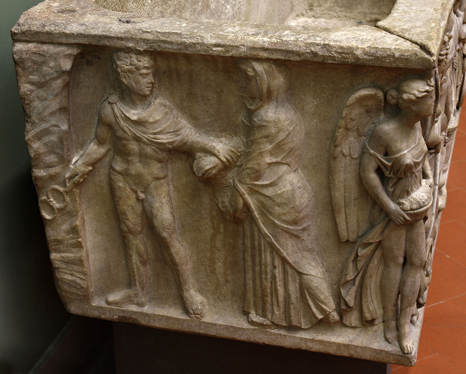 It is likely that this was a sarcophagus for a man, understand selene rushing towards him as an allegory for the deceased widow but also to idea of a happy marriage and never ending love