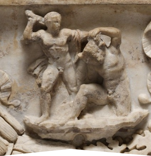 Describe the myths happening on the sarcophagus