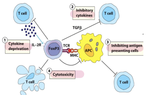 Treg interacts with APC’s Ag-MHCII complex it can down regulate other helper t cells on the APC surface