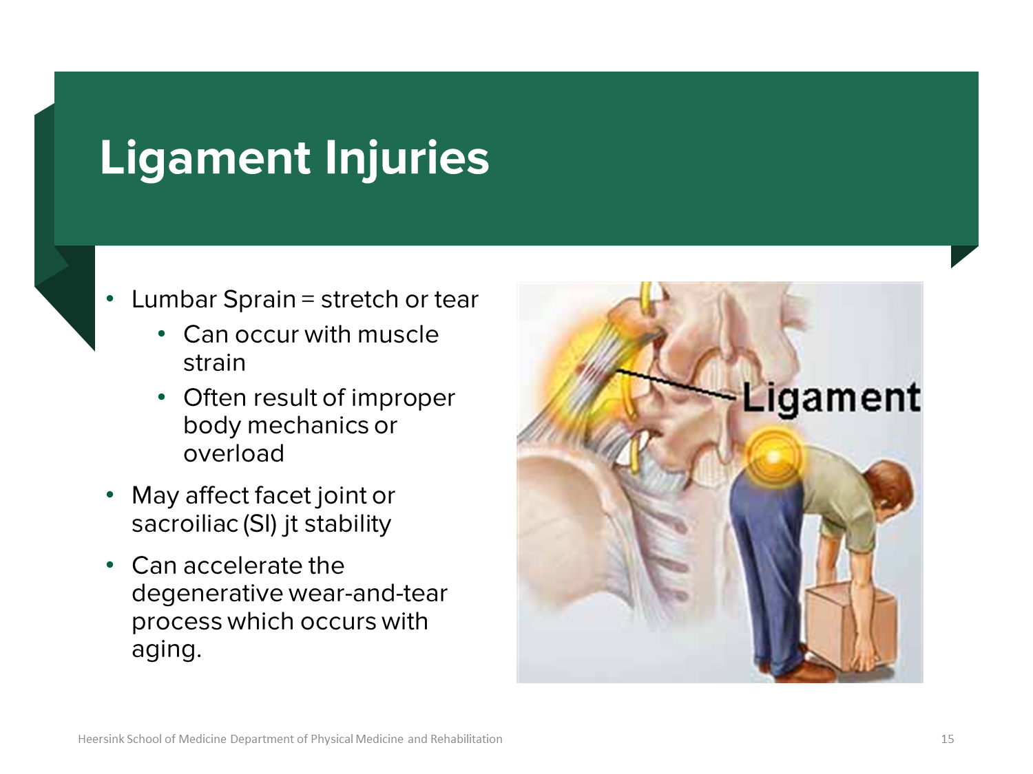 → Ligament injuries can cause instability in area with joints such as out Sacroiliac joint
