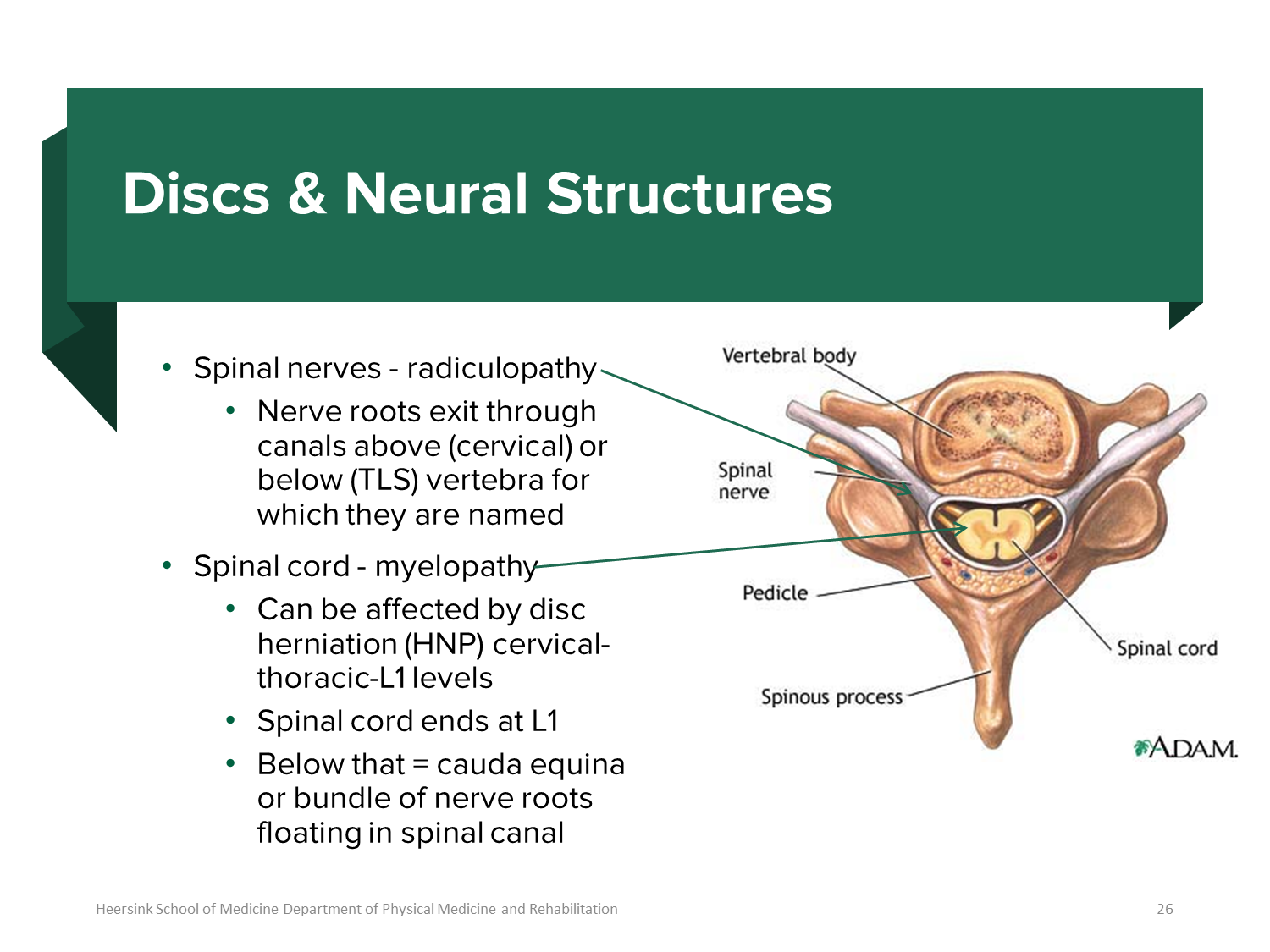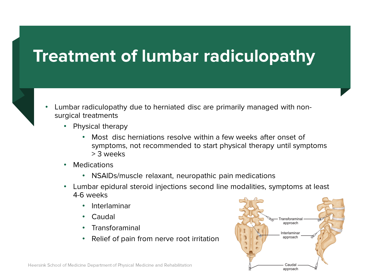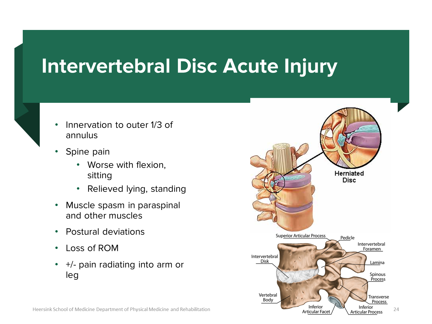 → most disc herniations will spontaneously resolve within a few weeks after onset