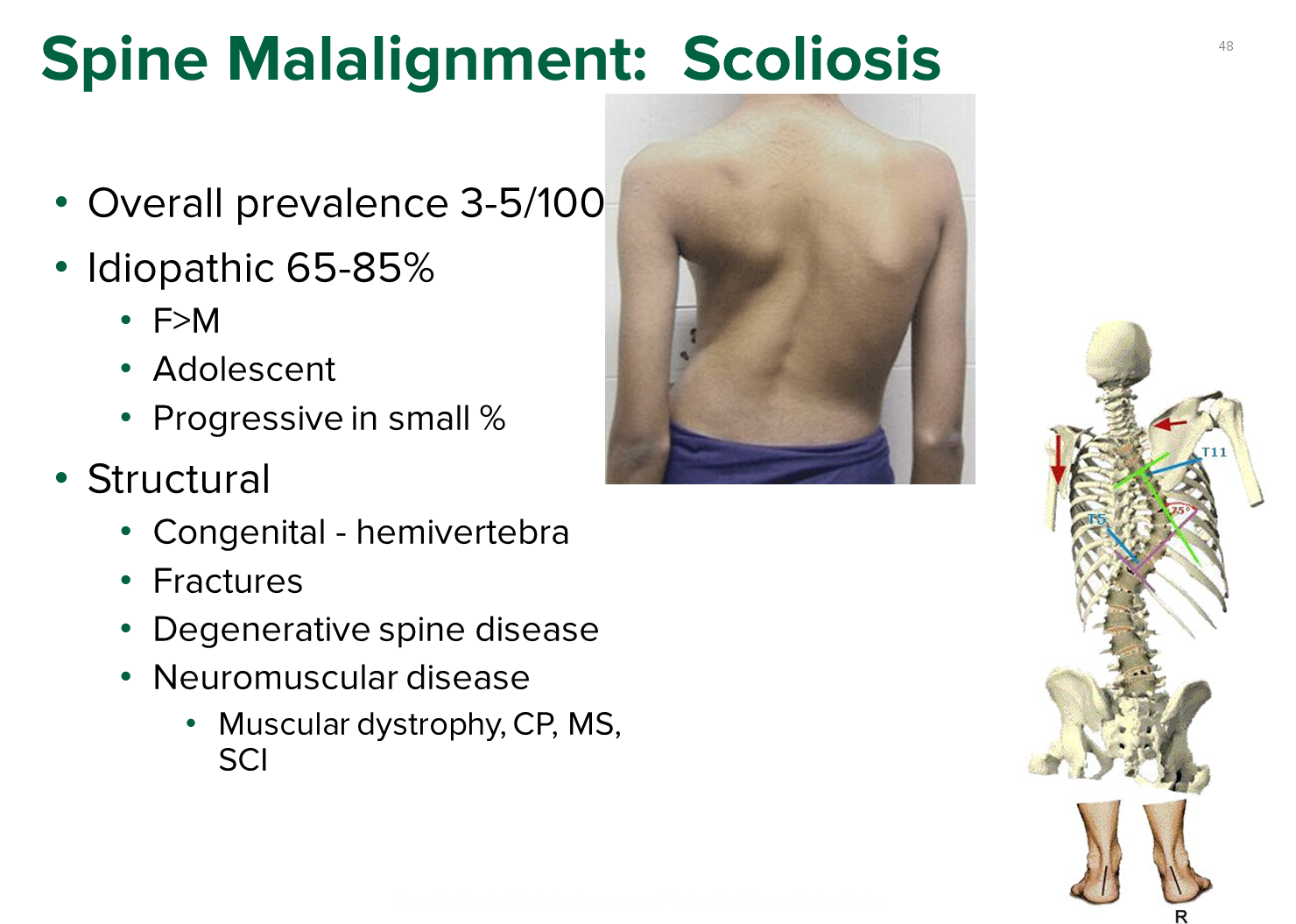Scoliosis is a lateral curvature of the spine greater than 10 degrees and is often idiopathic