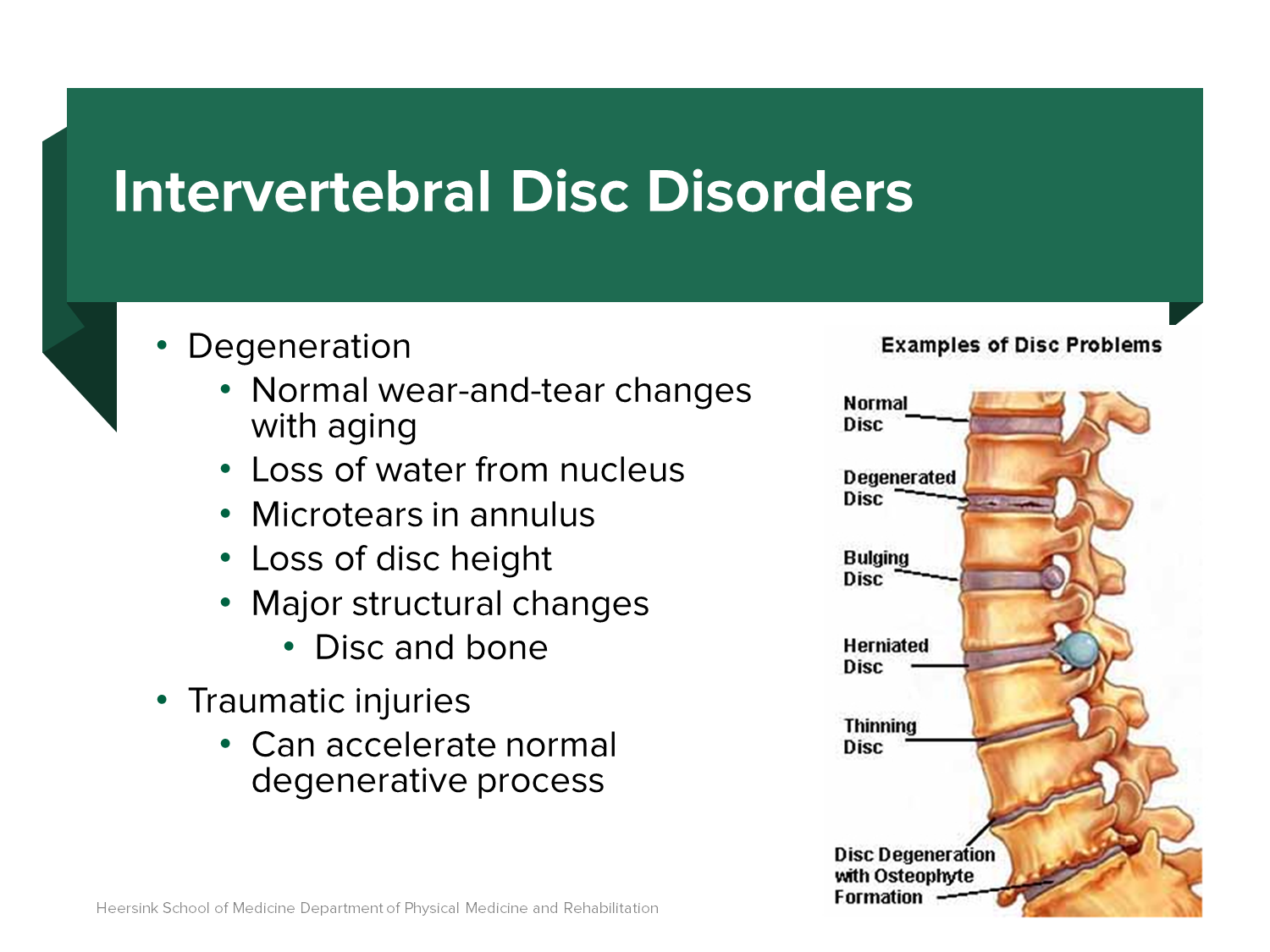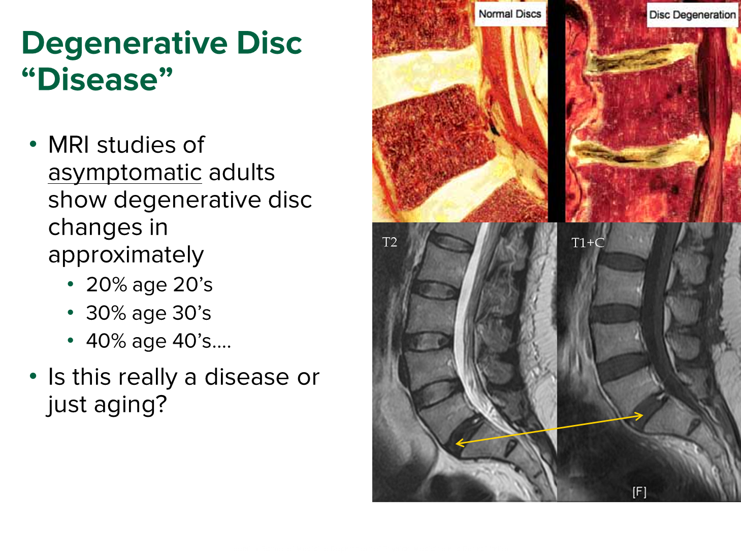 Degenerative Disc Disease is a result of normal wear and tear changes with age resulting in the breakdown of the intervertebral discs