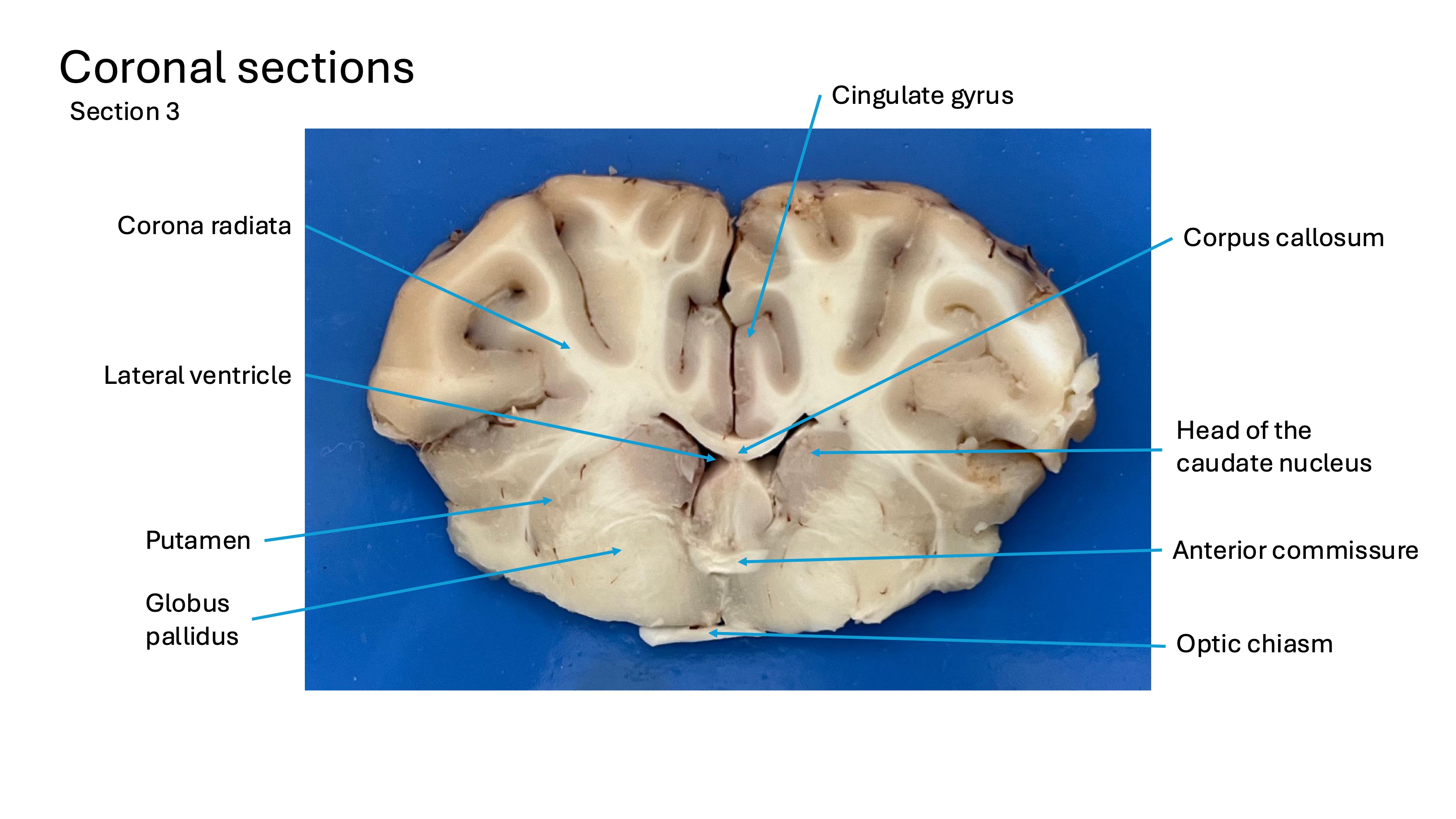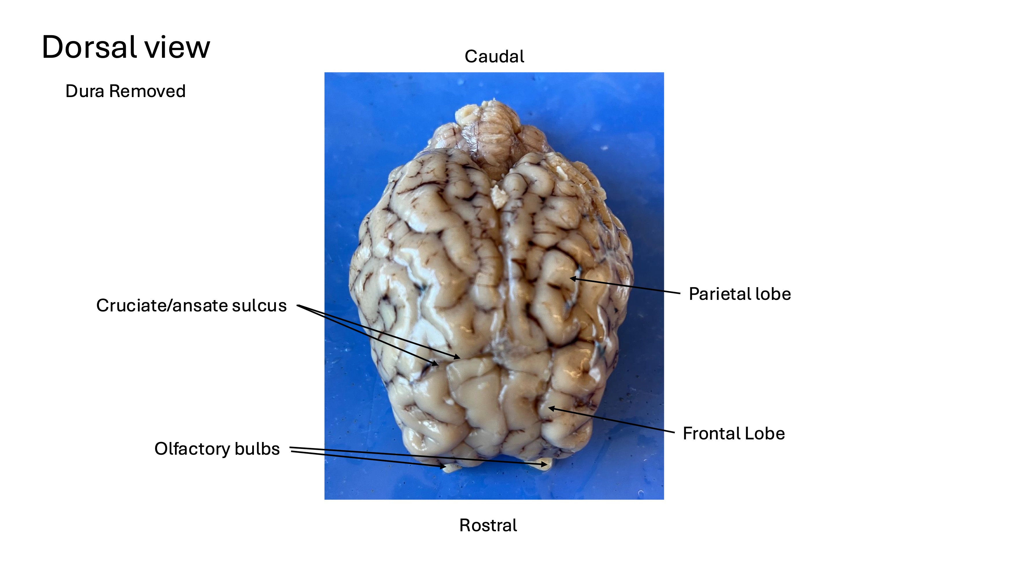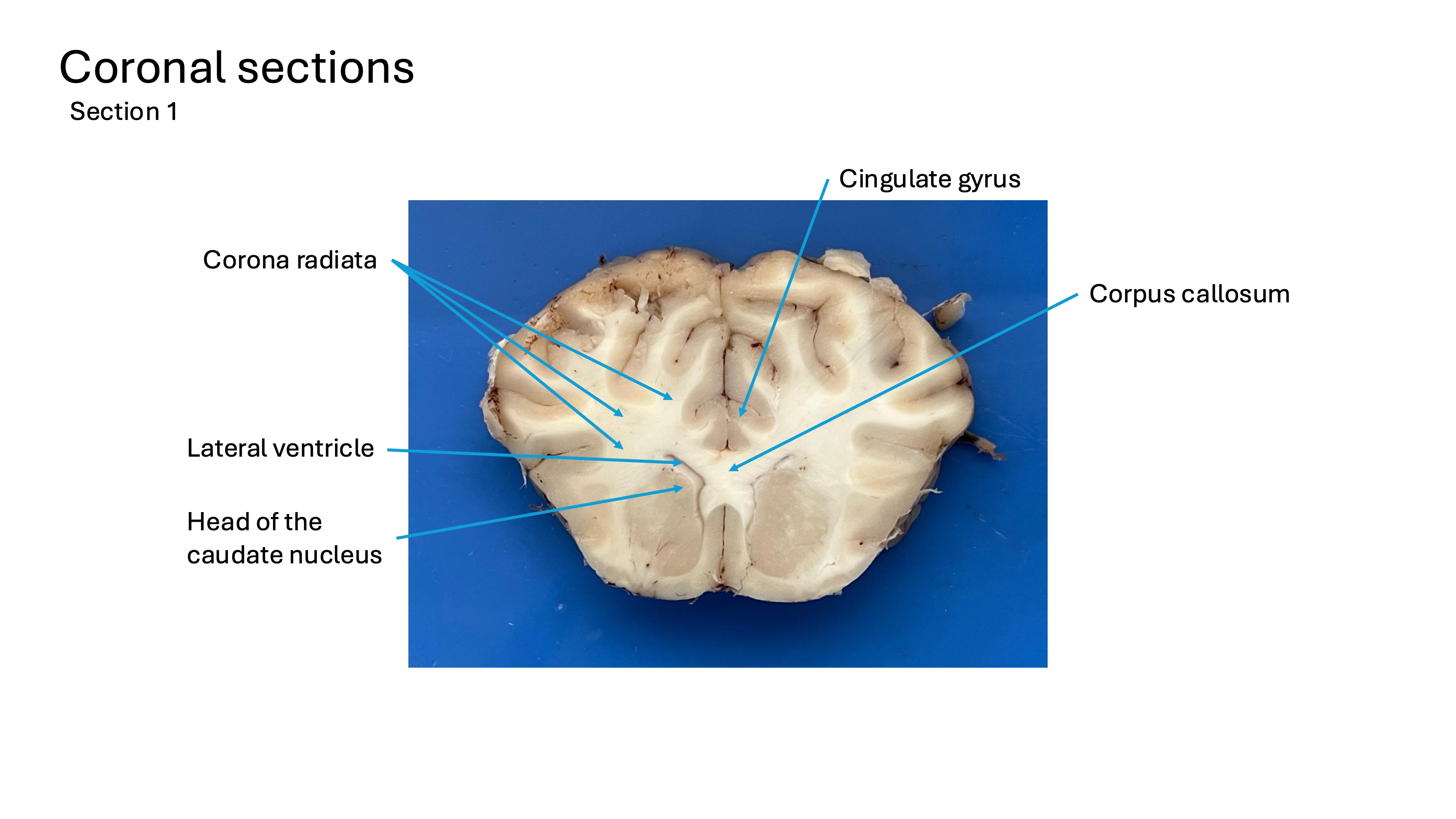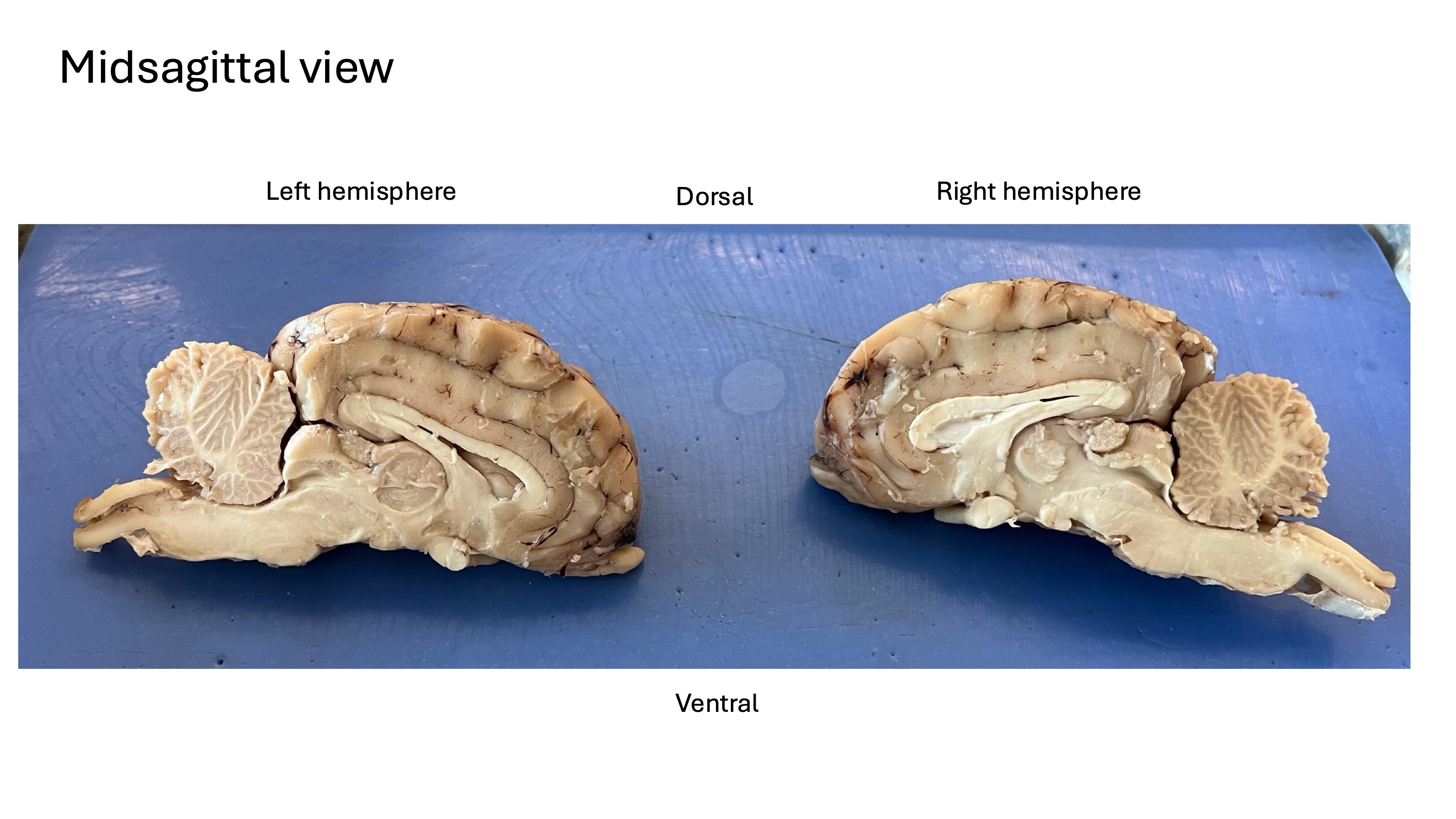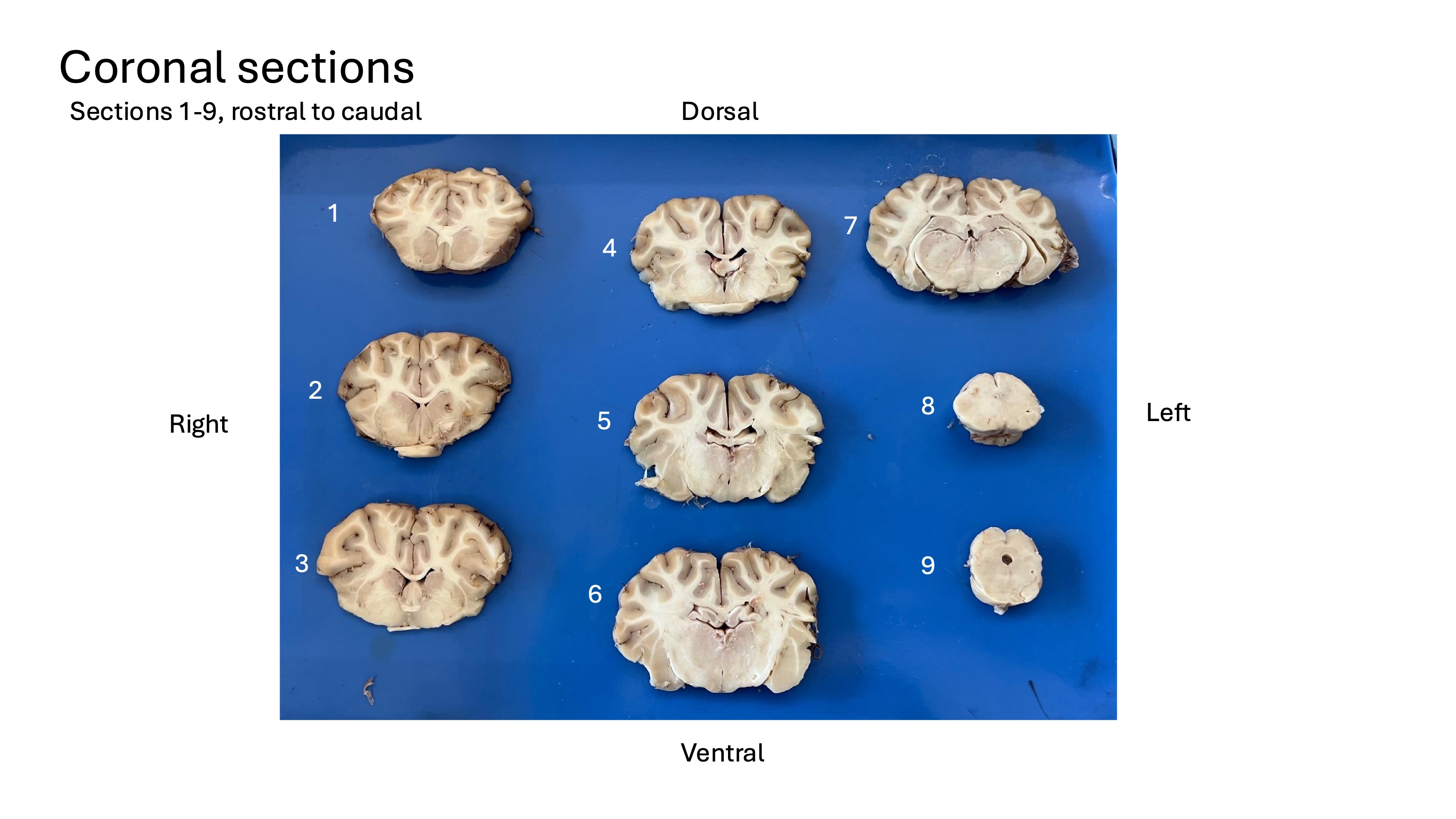 Coronal sections of the sheep brain (i.e., Where is dorsal vs. ventral? Where is left vs. right hemisphere?)