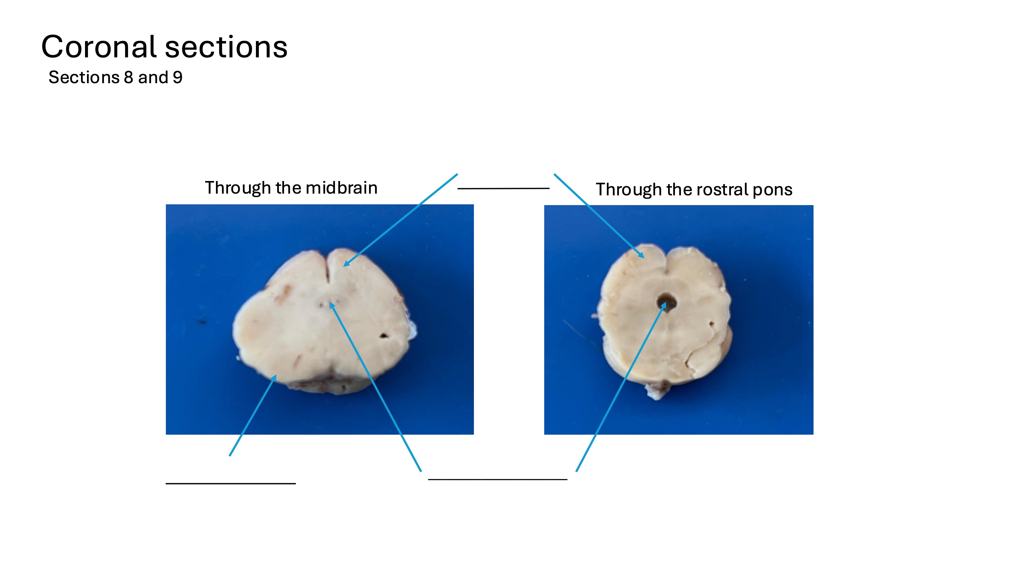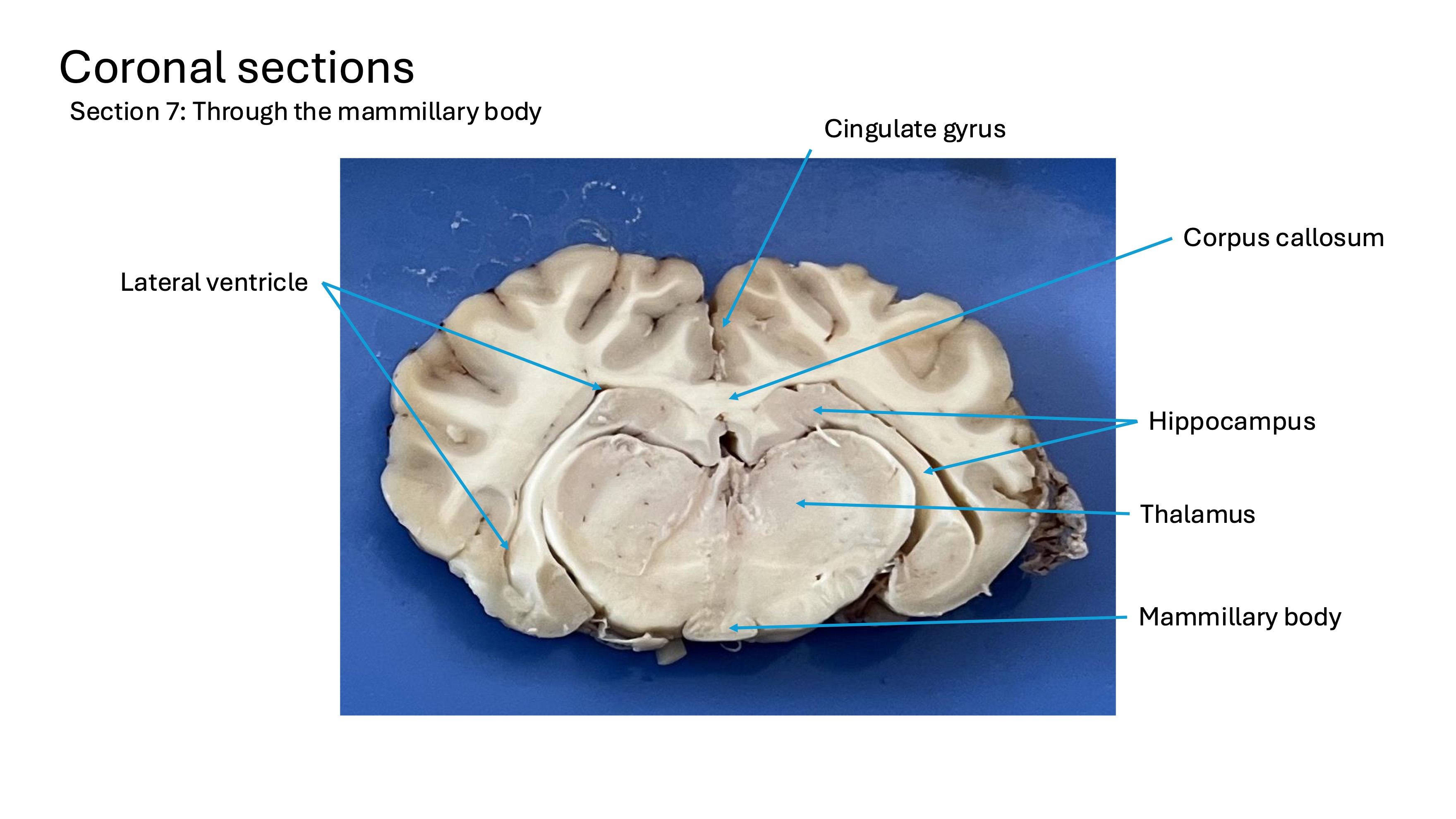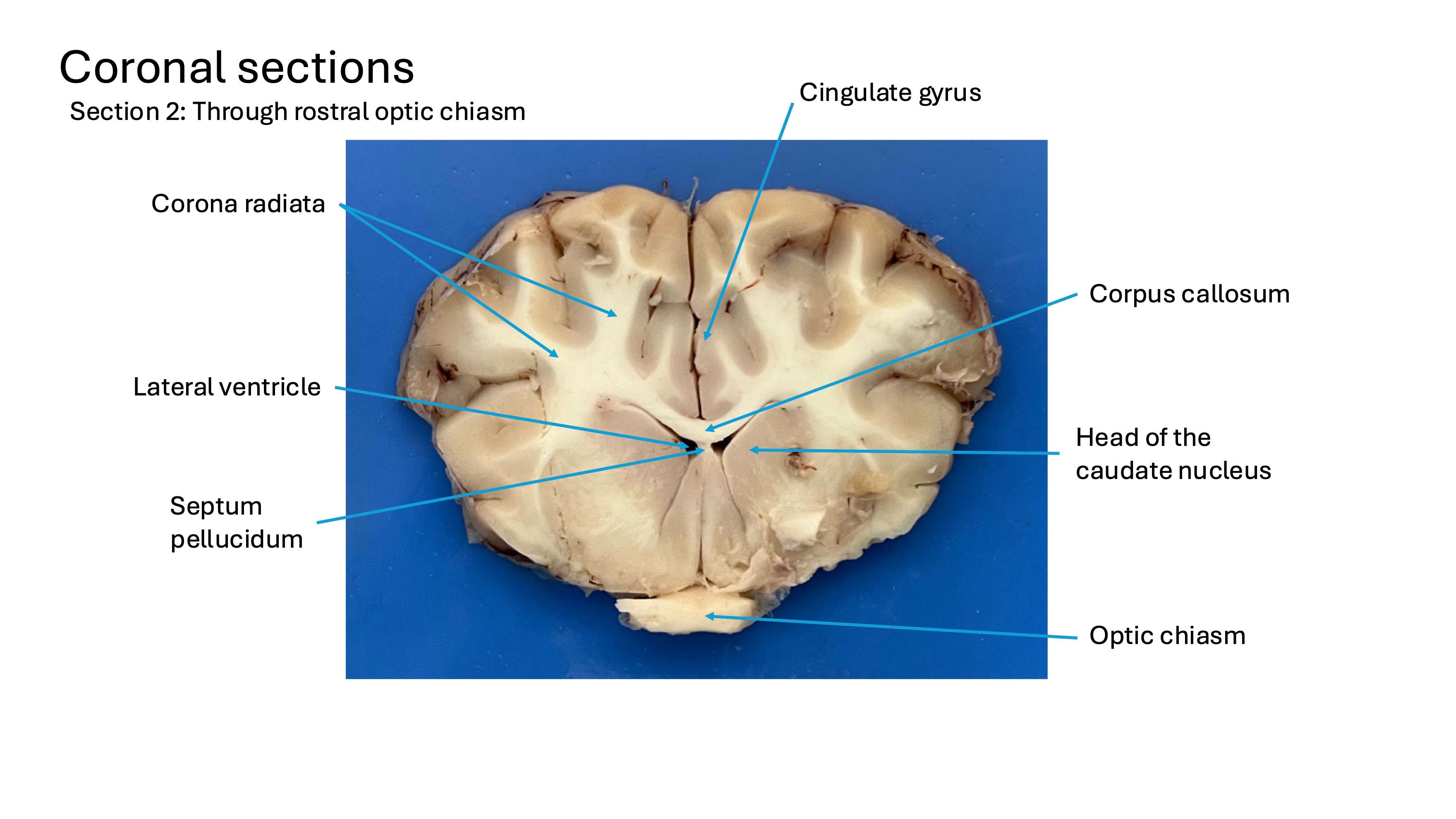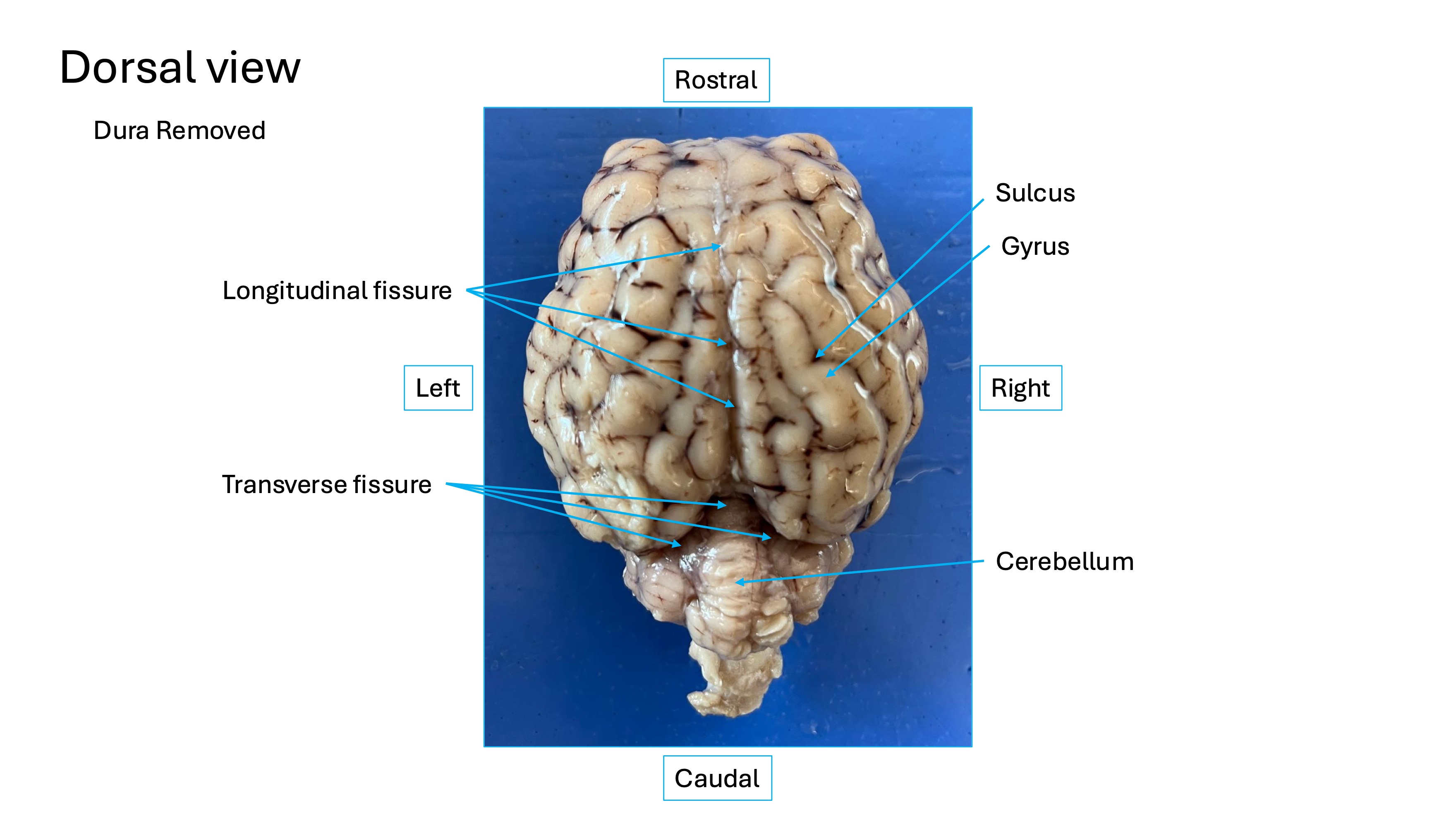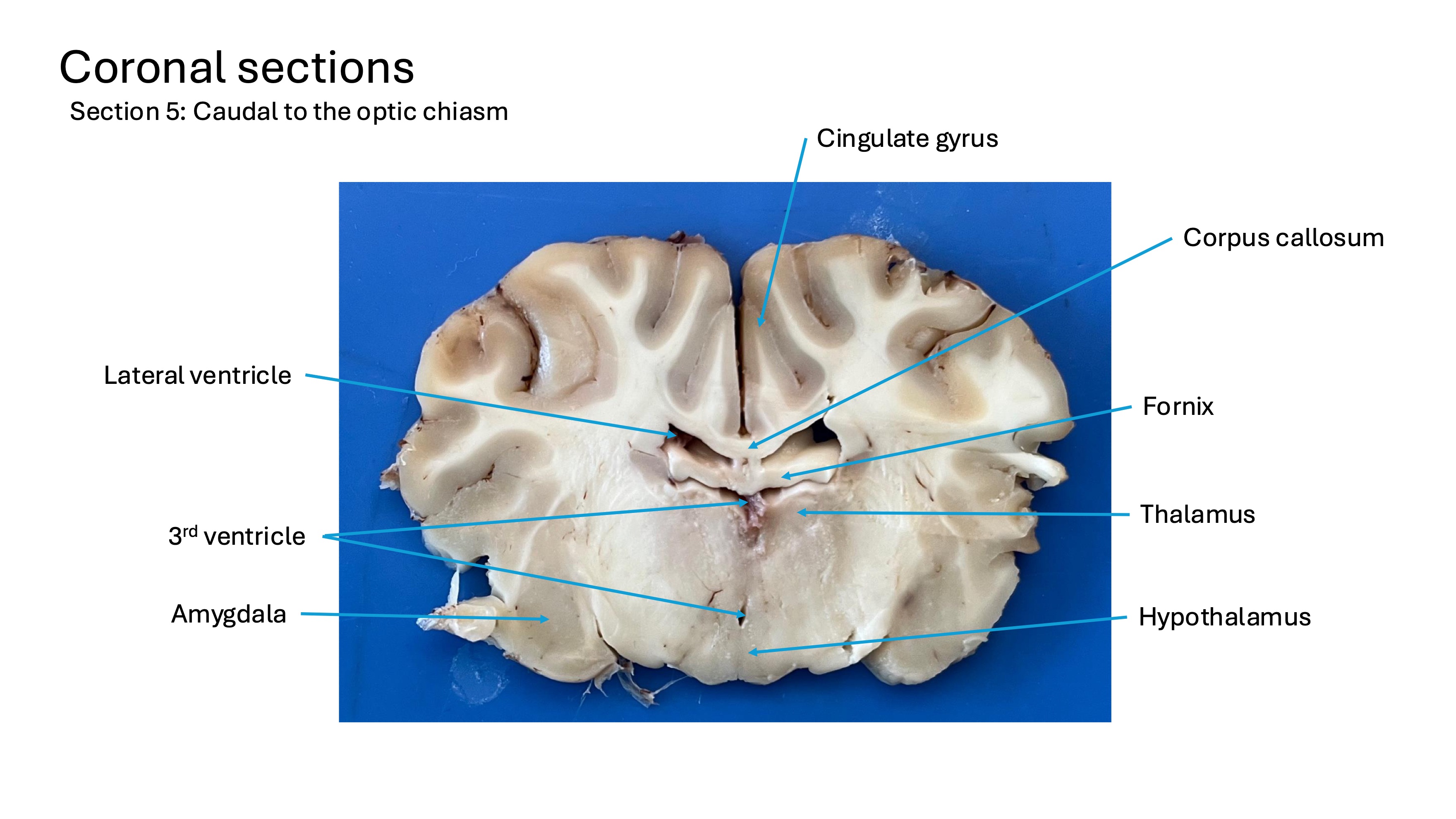 Coronal sections of the sheep brain (i.e., Where is dorsal vs. ventral? Where is left vs. right hemisphere?)