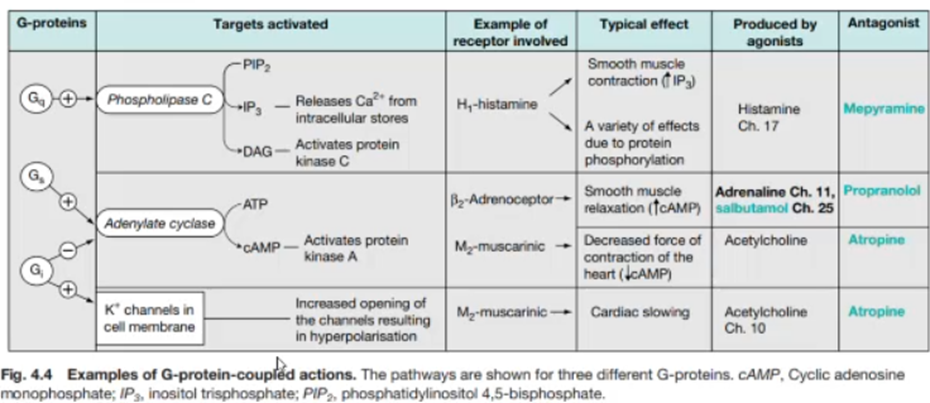 When the Gi activated: the beta gamma subunit can activate GIRK (ion channels). Some subtypes of receptors (M2 muscarinic Ach receptors) will not only decrease cAMP, but will also open postassium channels on Galphai activation, which is responsible for the cardiac slowing