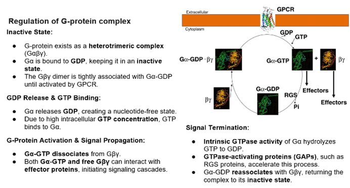 G protein activation is an intermediate between GPCR activation and intracellular effectors, role is to amplify the signal