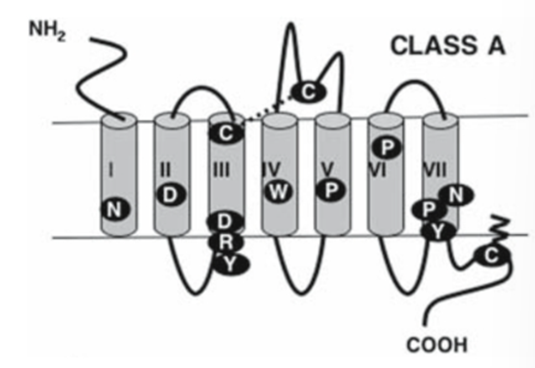 E/DRY motif is critical for G protein activation and the ionic lock which keeps the receptor in the inactive form —> mutations in this motif can lead to a constitutively active receptor
