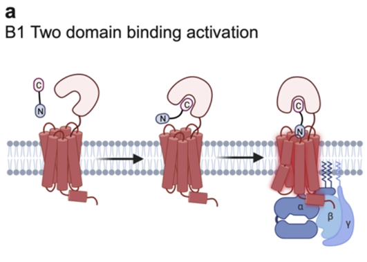 Two domain activation: the peptide will bind to the EC domain first which holds it in the correct position to interact with the receptor