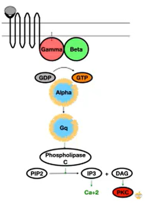 Activates PLC which is a protein which cleaves PIP2 into IP3 and DAG