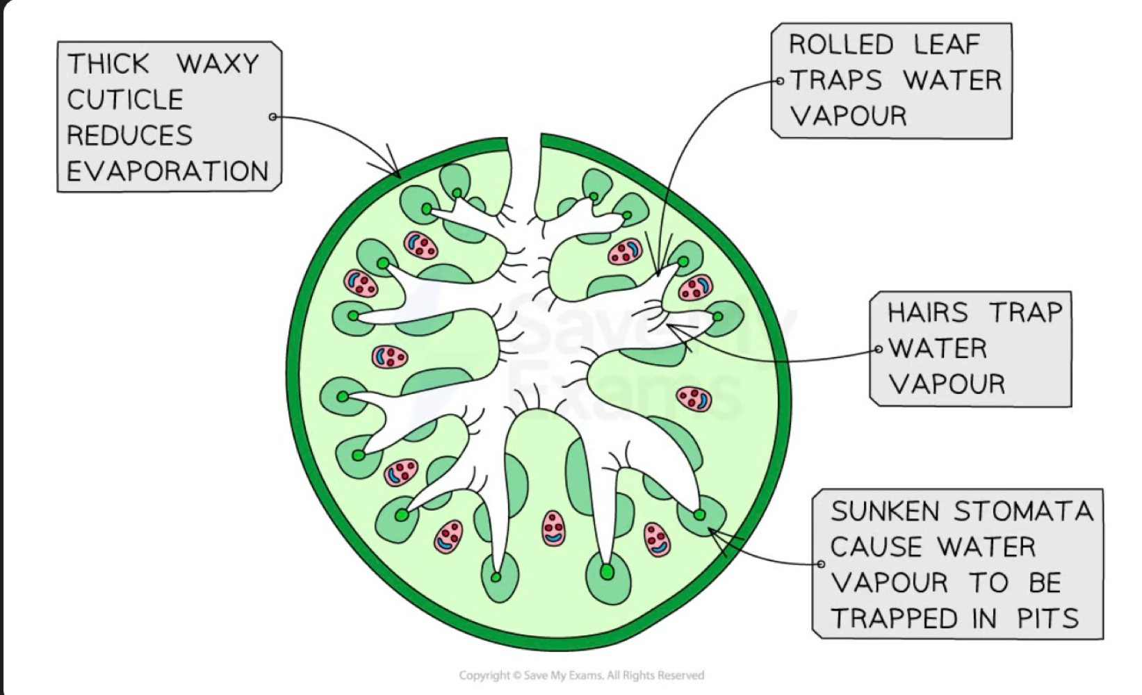 thicky waxy cuticle (↓ evaporation)