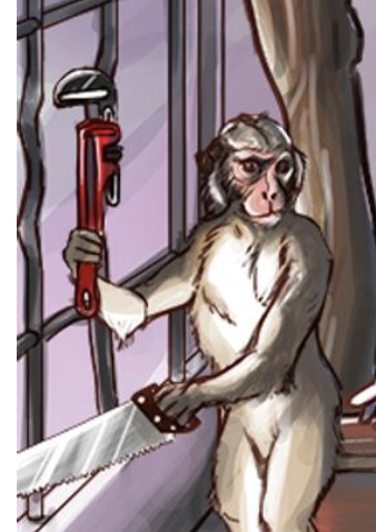 Monkey cutting the snare trap — Tetanus toxin will cleave snare and inhibit exocytosis of the neurotransmitter into the synapse (GABA and glycine) or Renshaw cells