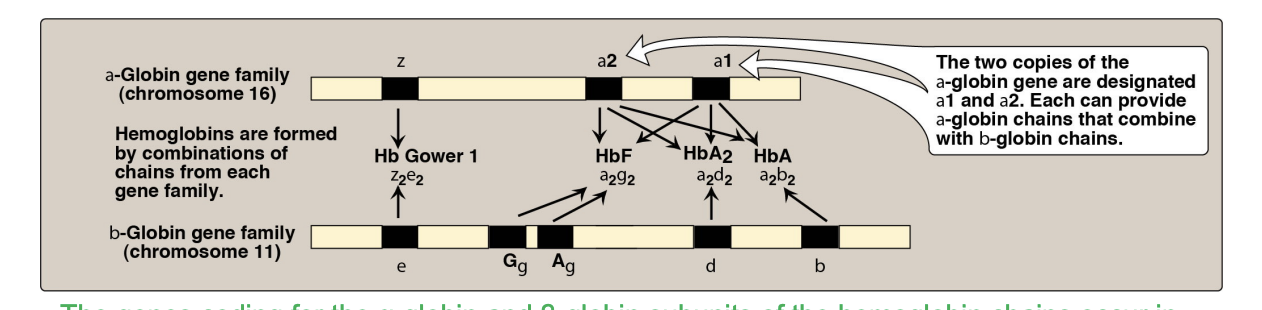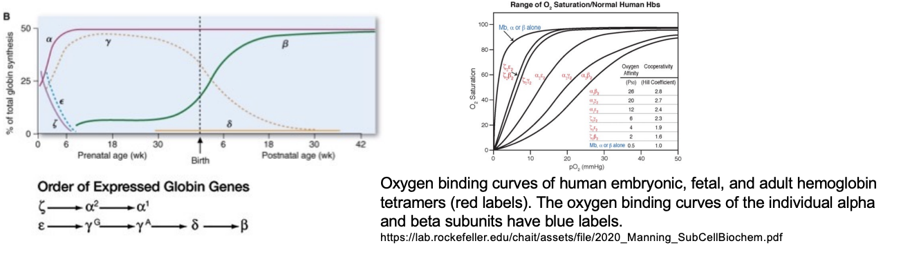 fetal hemoglobin is that alph beta, there are variaitons ot the alpha changes, and its afifnity of xogyen is regualted by its compositon of genes, and it is expressed in the hemoglobin structure throughg gene shuffling
