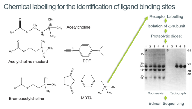 Now that we can localise the binding site, we can label them with 14C or tritium and can now track which subunits these molecules are binding to by running them on a gel and tracking the radioactivity