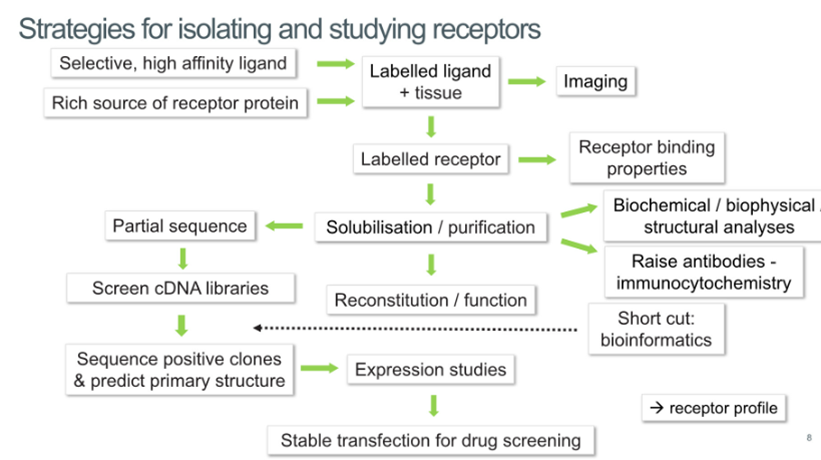 Once the receptor has been labelled allows you to purify it and assess the binding properties