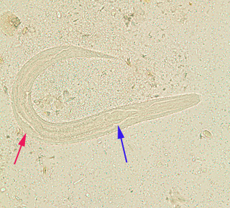 If larvae (not eggs) are found in stool, what parasite is most likely present?