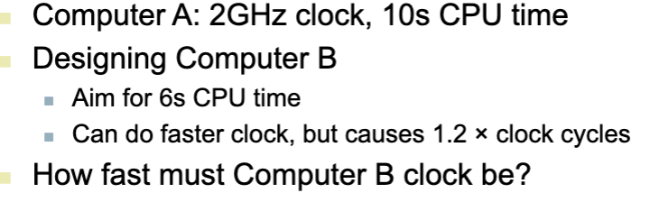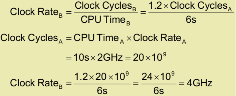 CPU Time = CPU Clock Cycles x Clock Cycle Time = CPU Clock Cycles / Clock Rate
