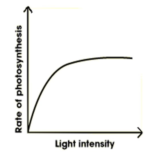 • After a while, the rate of photosynthesis does not increase, even though there is an increase in the intensity of light.