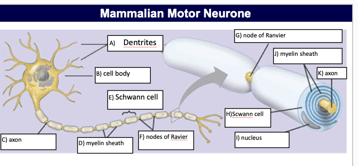 between adjacent Schwann cells there are constrictions where there is no myelin sheath, these are called nodes of Ravier
